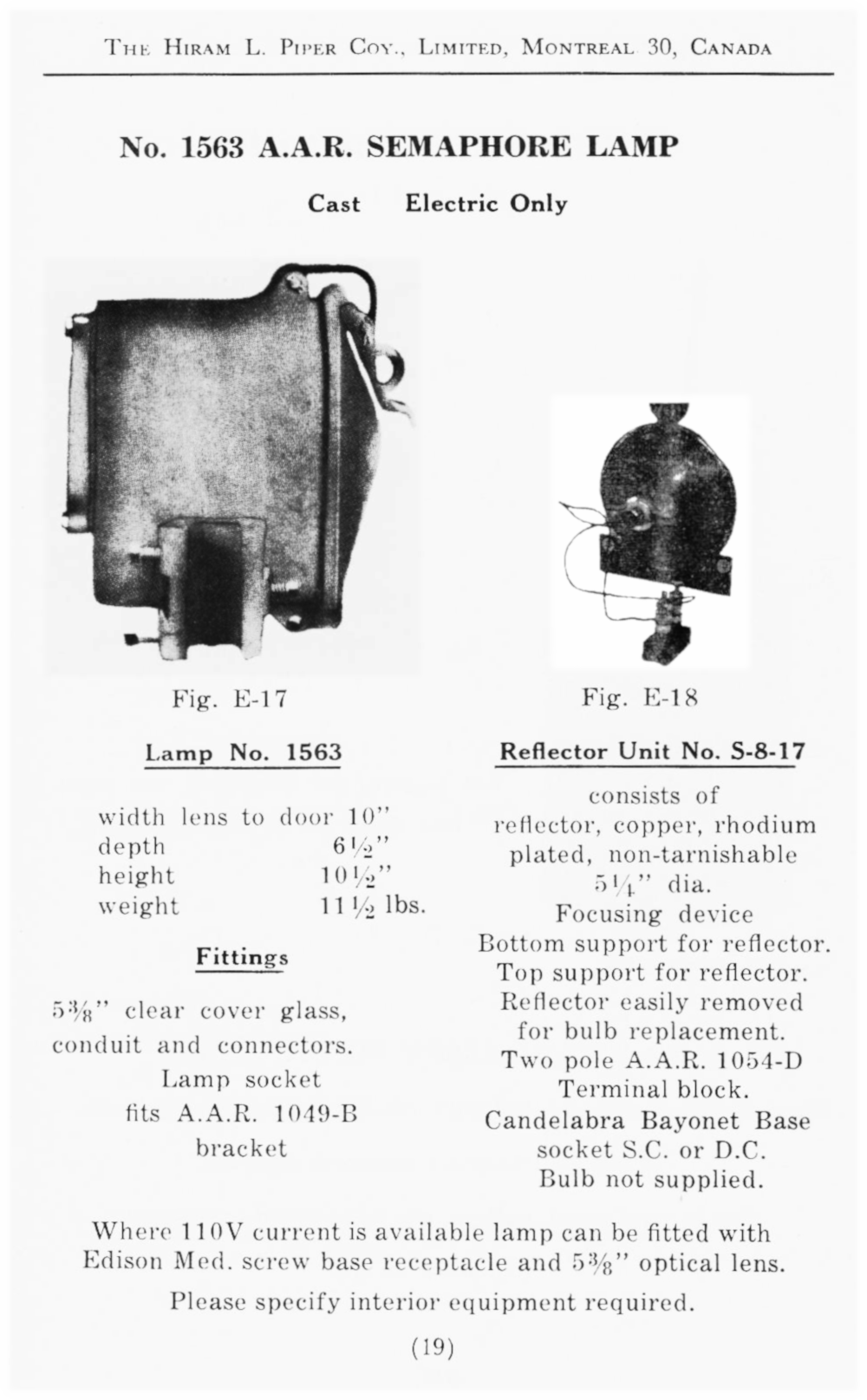 In the catalogue, there are a few specific CNR or CPR standards for things such as markers and switchlamps. Without Piper and tariffs, perhaps American producers would have had little interest in producing these particular specialty items.