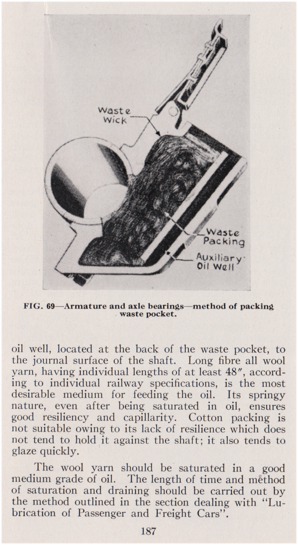 Imperial Oil put out a well-illustrated 300 page 5x7 inch book which looked at all aspects of lubrication on railways. Petroleum product tradenames: Gargoyle B.R.B. No 3 is my favourite, followed by Van Hymelt 2 ... they are probably both available for video game names if anyone is interested.